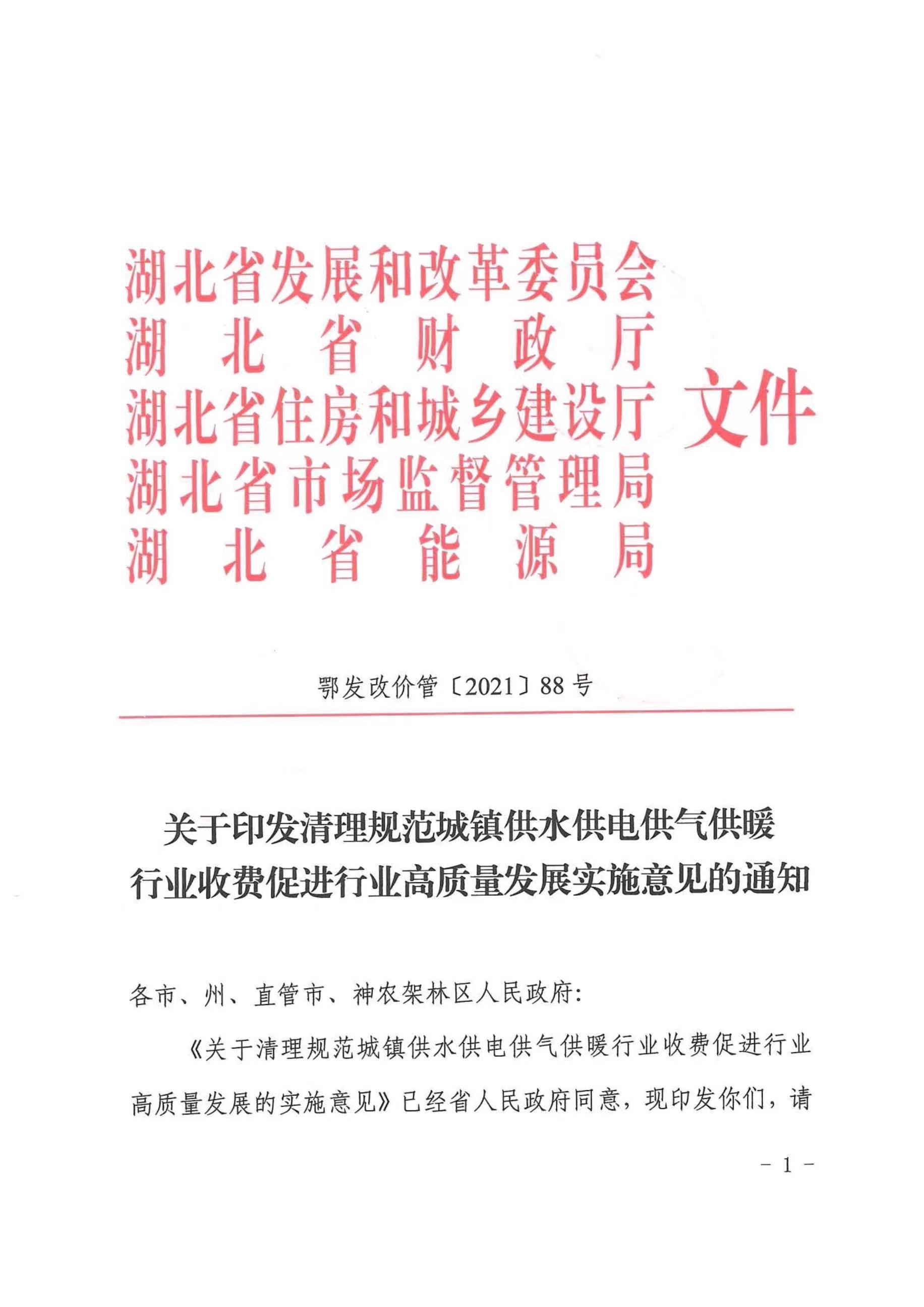 關于印發清理規范城鎮供水供電供氣供暖行業收費促進行業高質量發展實施意見的通知
