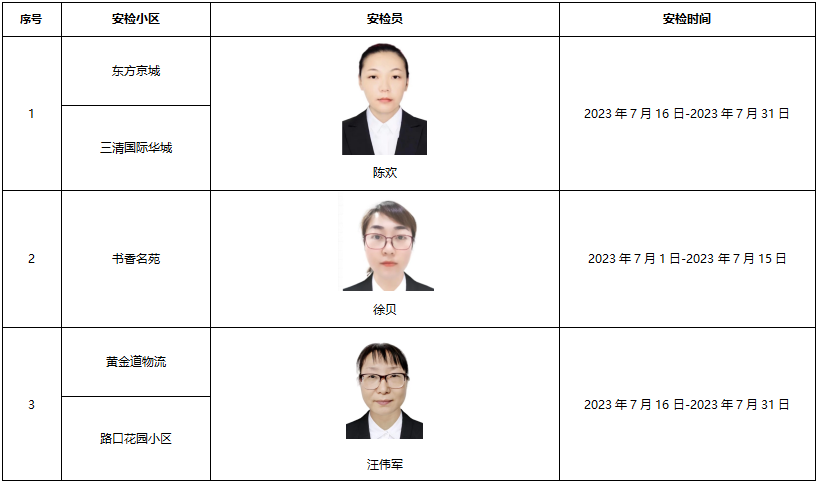 1、入戶安檢時間以安檢員與社區對接為準,請居住在以上區域的燃氣用戶關注小區(單位住宿區)醒目位置張貼的《天然氣入戶安全檢查通知》以及物業群公示的《安檢通知》。根據具體工作時間,確保家中留人,配合工作人員入戶檢查。